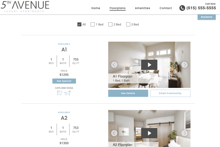 And because every renter knows what floorplan they need before beginning their search, they want to be able to see exactly what it looks like on your website.